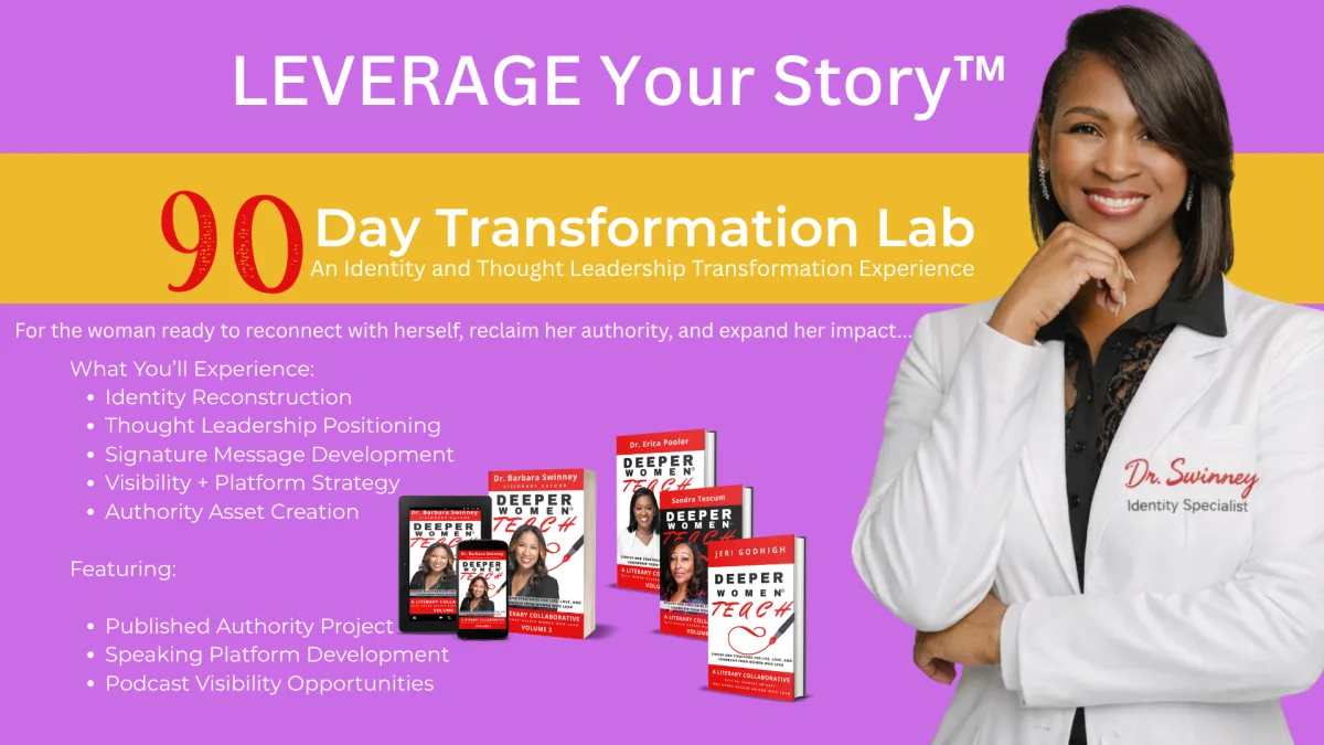 A transformational identity experience designed to help you heal, rediscover who you are, and begin using your story as a tool for impact—with the option of becoming a published coauthor.